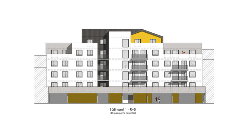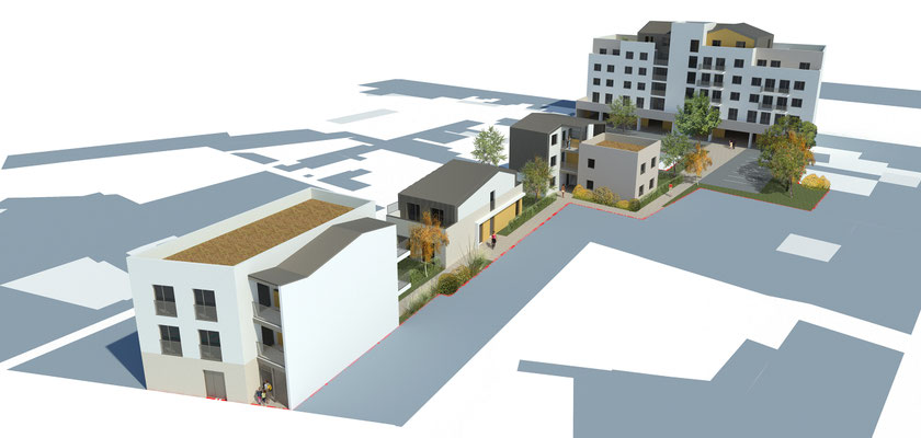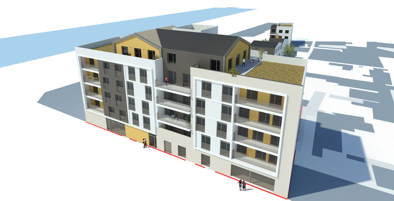 NotNotre réflexion porte sur un projet comptabilisant 42 logements sur 4 bâtiments distincts mais d’architecture homogène, projeté en harmonie avec l’ensemble des contraintes du site. Les bâtiments du site sont traités en harmonie entre eux et en adéquation avec l’ambiance générale du quartier.