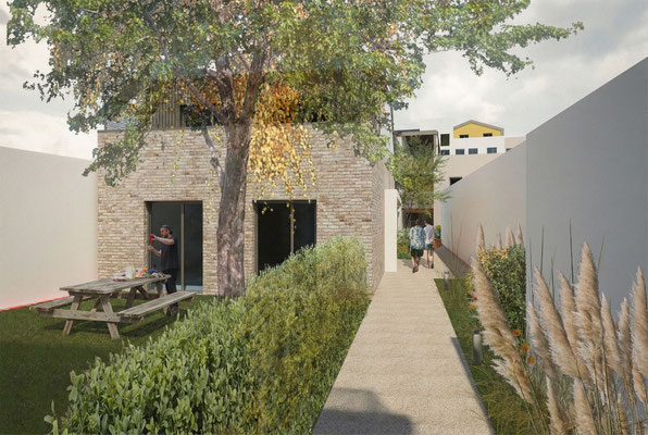 · Deux bâtiments (Bât. 2 & 3) en cœur d’ilot, de gabarit R+1 et R+2, accompagnant le cheminement de la venelle projetée et l’animant.