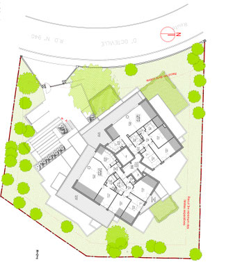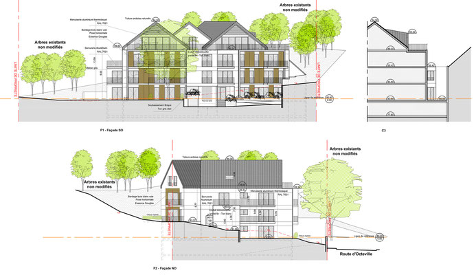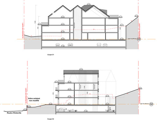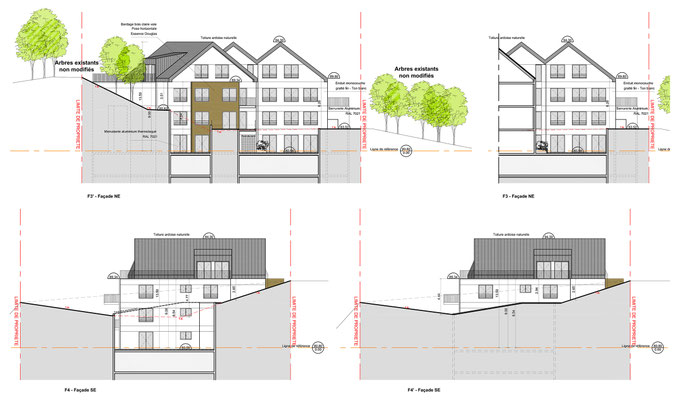 - Intégration du bâtiment dans le contexte topographique de la parcelle (fort dénivelé).